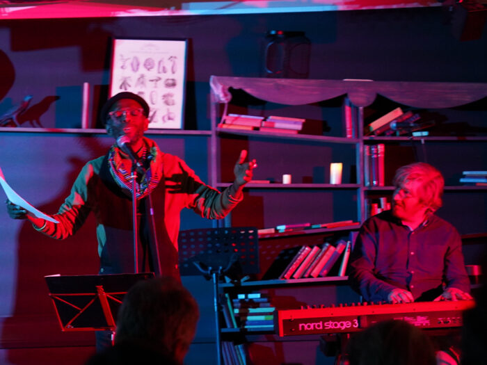 スポークン・ワードって、イギリスのライブではけっこうメジャーなジャンルで、要は詩の朗読なんだけど、ラップはリズムに合わせて言葉が乗る一方で、こっちは、言葉が主役で音楽は即興で合わせるスタイル。