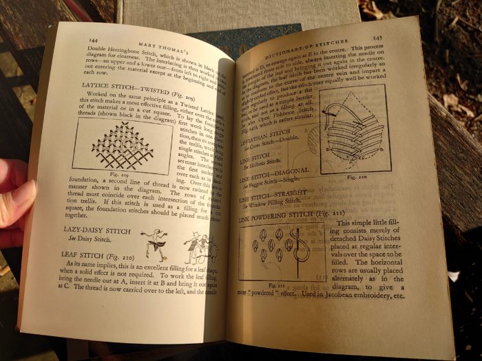 MARY THOMS’S DICTIONARY OF EMBROIDERY STITCHES – 初版は1934年、これは1949年の増版。様々なステッチが細かく解説されているのに加えて、挿絵がかわいい。