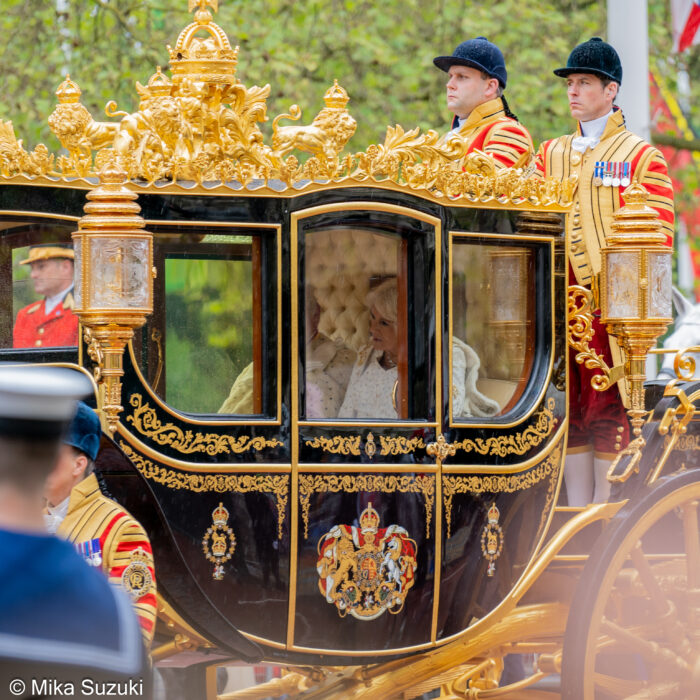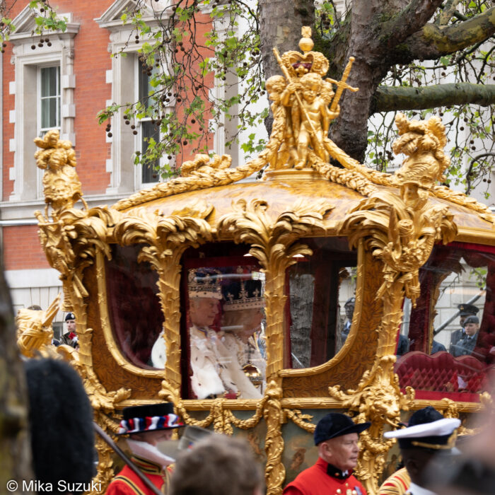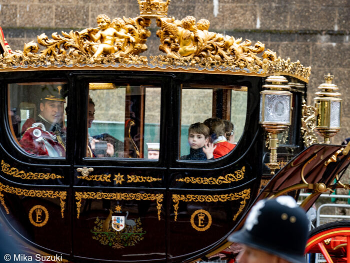10時にバッキンガム宮殿からウェストミンスター寺院へ向かうチャールズ王とカミラ女王を見ることができ、儀式の間は音声だけを聞きながら3時間弱待ち、バッキンガム宮殿への戻りはゴールデンステートコーチに乗った王、女王に加えて、ウィリアム王子、キャサリン妃をはじめ、ロイヤルファミリーも見ることができました。