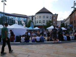 土地勘も全くなかったので、できるだけ会社に近いところ、車で通勤しやすそうで、でも電車でも行けるところ。で、会社の近隣のWokingという街に住むことに。わりと近代的なマンションで、すぐ隣にTesco Expressという食料もそこそこ売っているミニスーパーもあり、駅前にはショッピングセンターも。土曜日の夕方に行ったら、小さなテントでアジアンフードの出店があったり、みんなお酒を片手に、広場でくつろいでました。